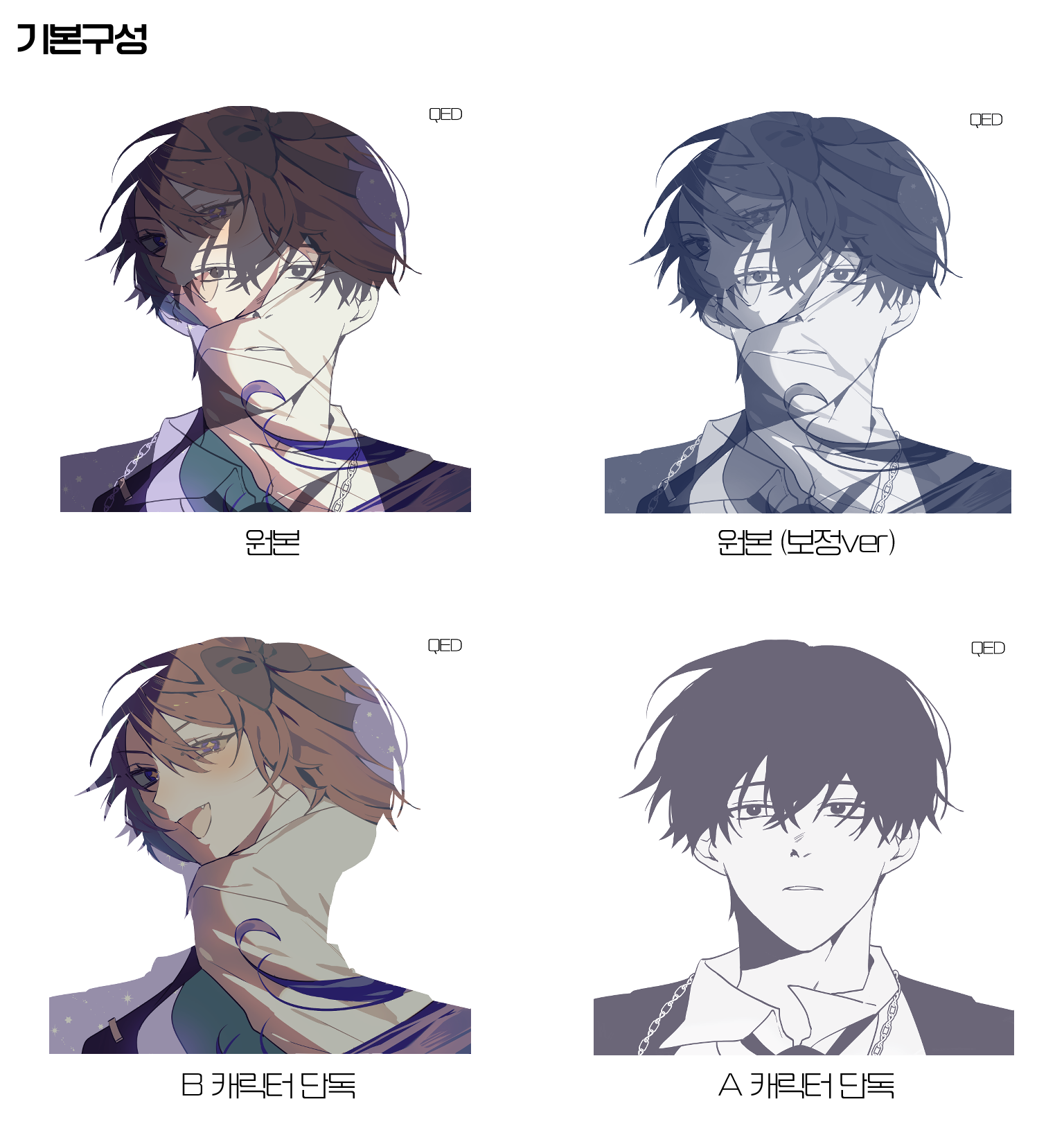 A 캐릭터 - 선화+간단 명암 두상 / B 캐릭터 - 채색 흉상